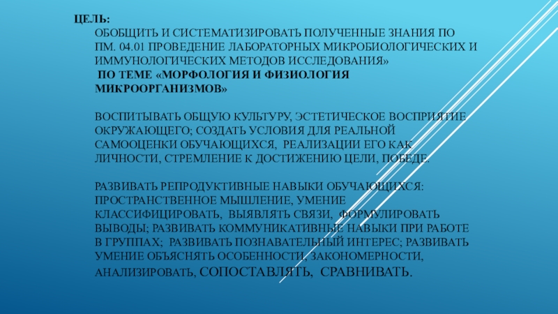 Обобщить и систематизировать полученные знания по ПМ. 04.01 Проведение лабораторных