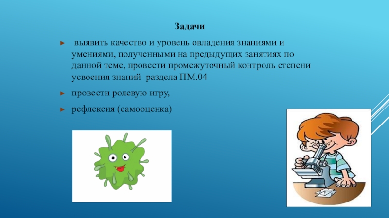 занятиях по данной теме, провести промежуточный контроль степени усвоения знаний раздела ПМ.04