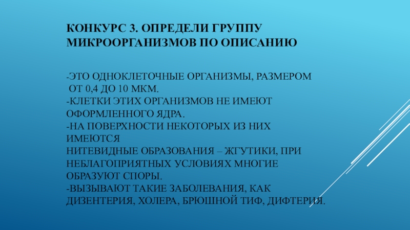 Конкурс №3. «Определи группу микроорганизмов по описанию»