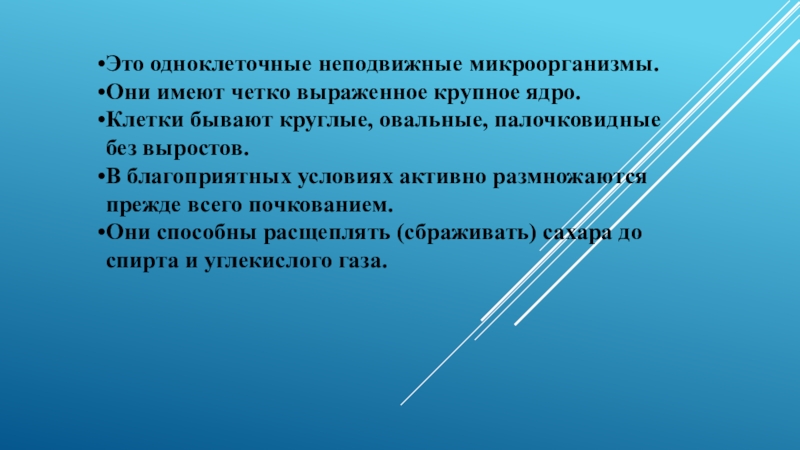 Они способны расщеплять (сбраживать) сахара до спирта и углекислого газа.