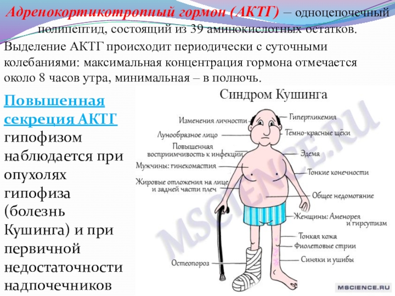 Слайд 18Адренокортикотропный гормон (АКТГ) – одноцепочечный полипептид, состоящий из 39 аминокислотных остатков.