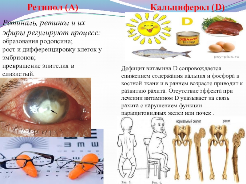 Дефицит витамина D сопровождается снижением содержания кальция и фосфора в костной ткани и в раннем возрасте приводит к развитию рахита. Отсутствие эффекта при лечении витамином D указывает на связь рахита с нарушением функции паращитовидных желез или почек .