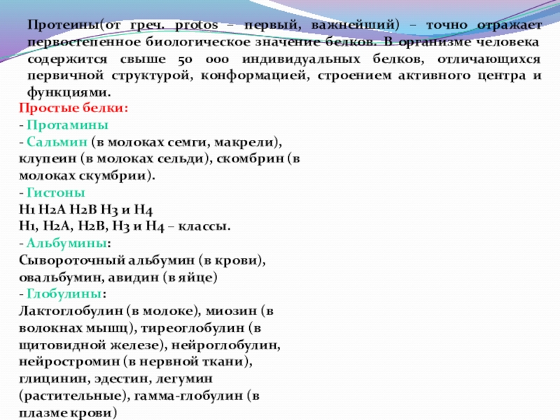 Слайд 30Протеины(от греч. protos – первый, важнейший) – точно отражает первостепенное биологическое