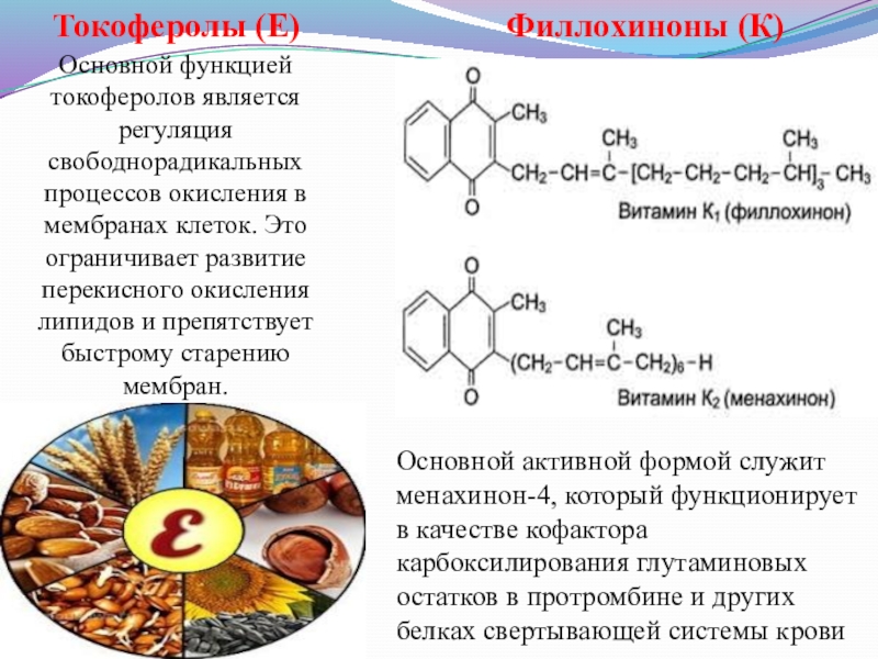 Основной функцией токоферолов является регуляция свободнорадикальных процессов окисления в мембранах