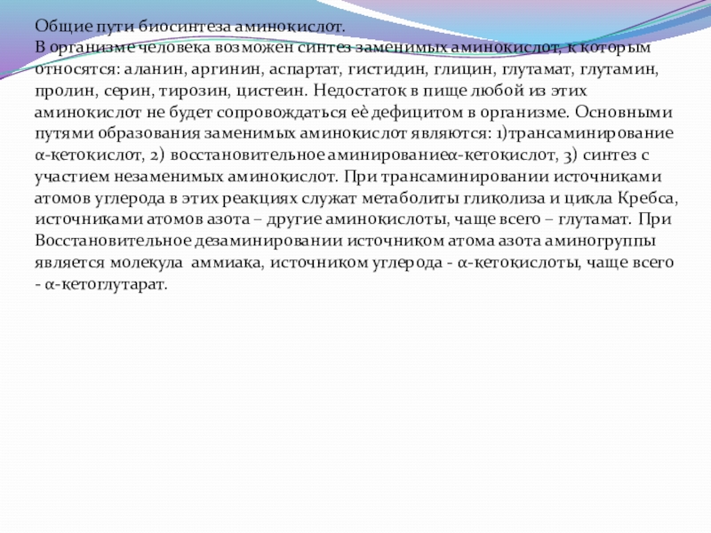 аминокислот не будет сопровождаться еѐ дефицитом в организме. Основными