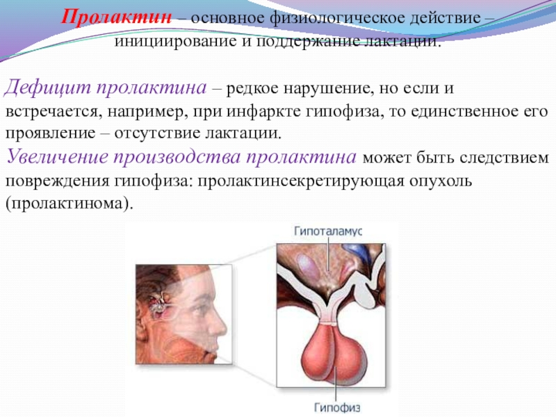 Слайд 17Пролактин – основное физиологическое действие – инициирование и поддержание лактации.