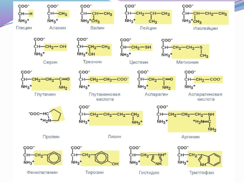 Моноаминомонокарбоновые: глицин, аланин, валин, изолейцин, лейцин