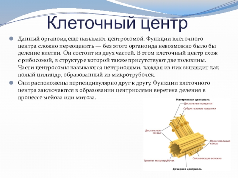 Данный органоид еще называют центросомой. Функции клеточного центра сложно переоценить