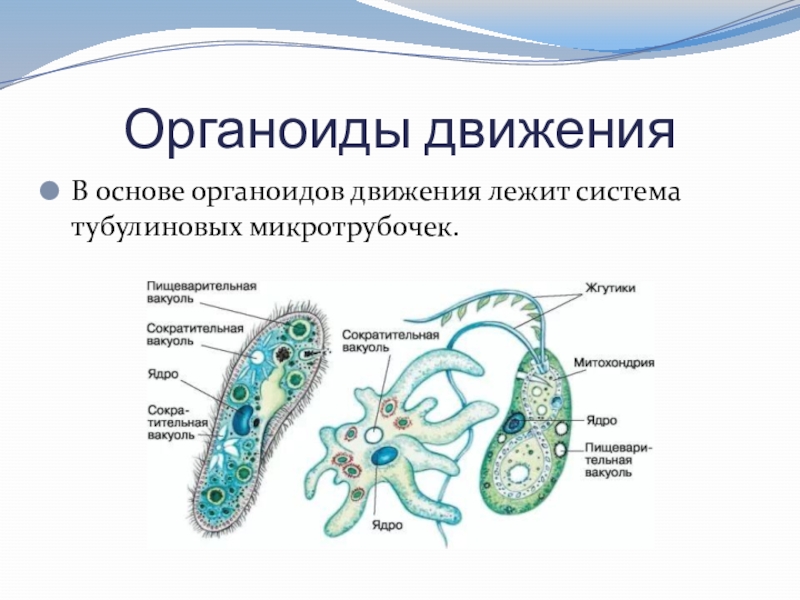 В основе органоидов движения лежит система тубулиновых микротрубочек.