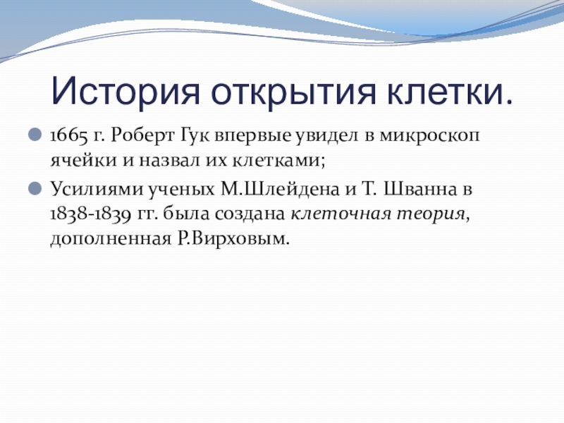 1665 г. Роберт Гук впервые увидел в микроскоп ячейки