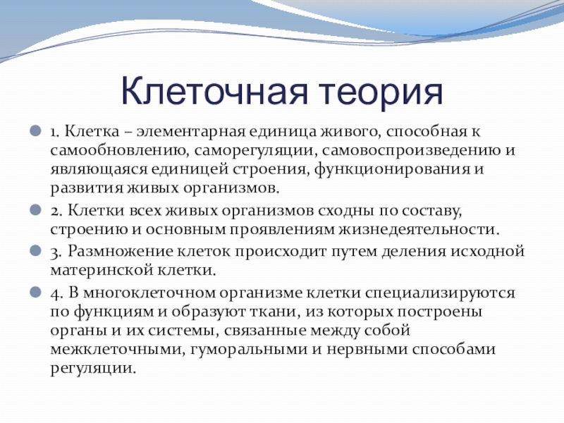 1. Клетка – элементарная единица живого, способная к самообновлению, саморегуляции,