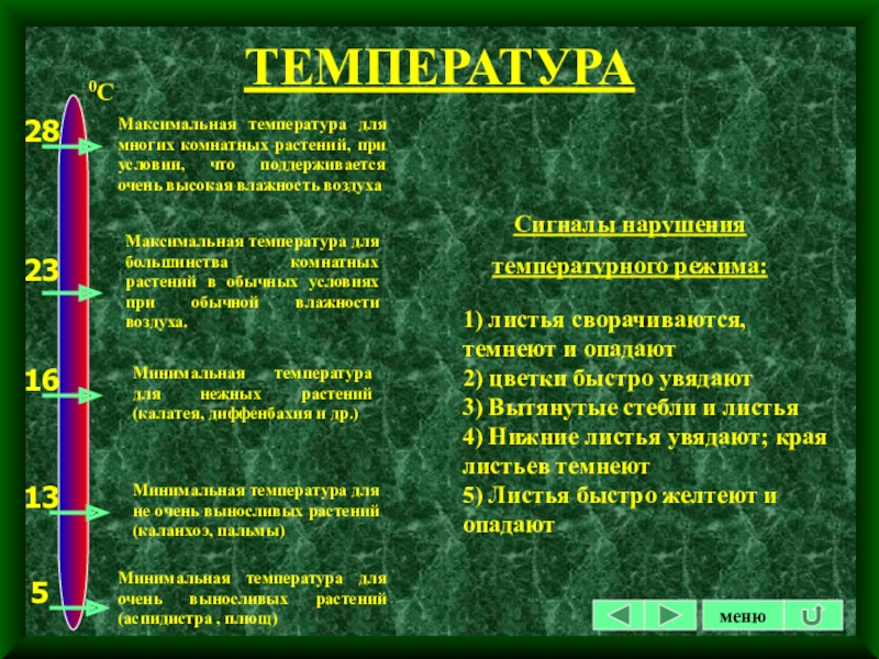 Максимальная температура для большинства комнатных растений в обычных условиях при обычной влажности воздуха.