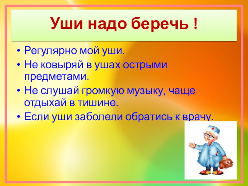 Слайд 18Уши надо беречь !