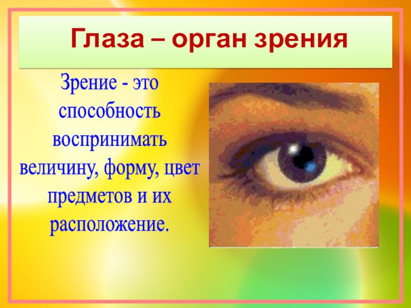 Слайд 11Глаза – орган зрения