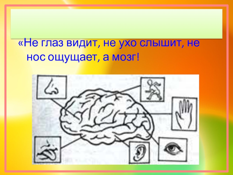 Слайд 34«Не глаз видит, не ухо слышит, не нос ощущает, а мозг!