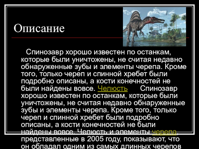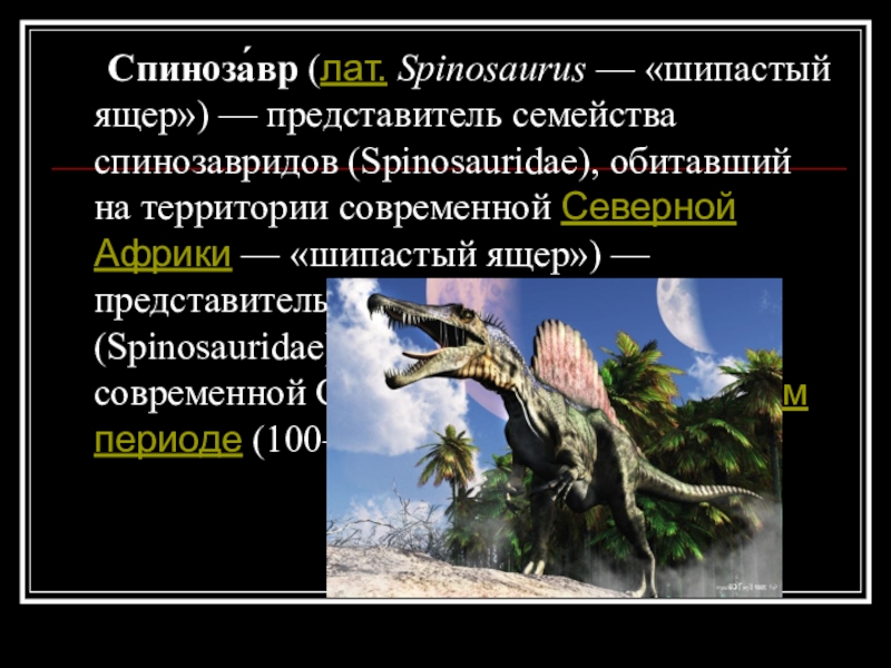 Спинозавр - один из самых крупных хищников доисторической эпохи.