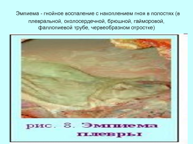 Слайд 19 Эмпиема - гнойное воспаление с накоплением гноя в полостях (в