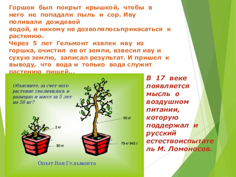 В 17 веке появляется мысль о воздушном питании, которую поддержал и русский естествоиспытатель М. Ломоносов.
