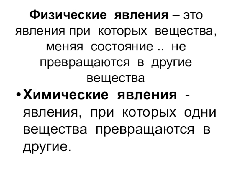 Химические явления - явления, при которых одни вещества превращаются в другие.