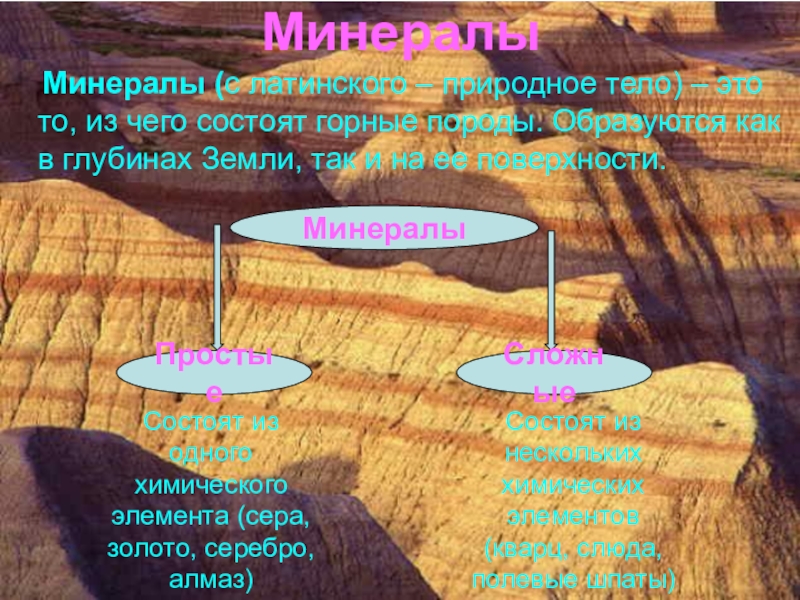 Состоят из нескольких химических элементов (кварц, слюда, полевые шпаты)