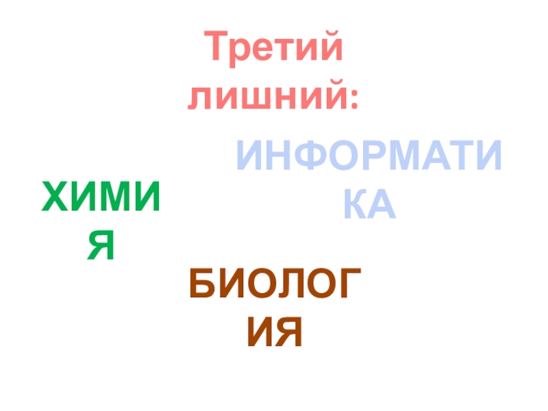 Третий лишний:химияБИОЛОГИЯИНФОРМАТИКА