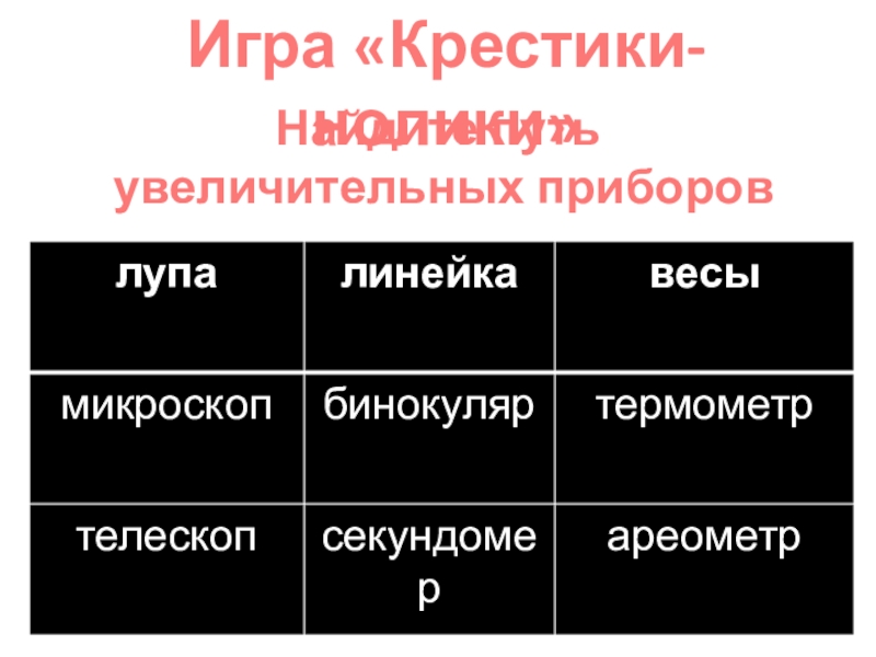 Игра «Крестики- нолики»Найдите путь увеличительных приборов