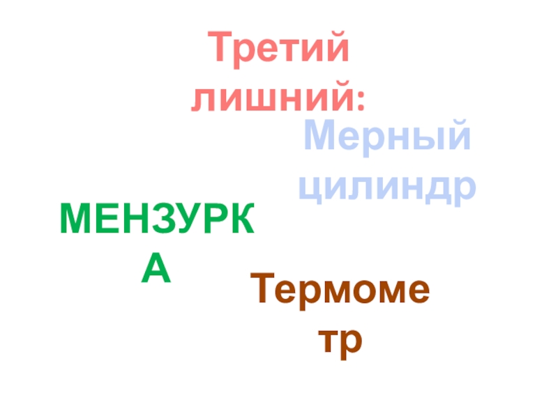 Третий лишний:мензуркаТермометрМерный цилиндр