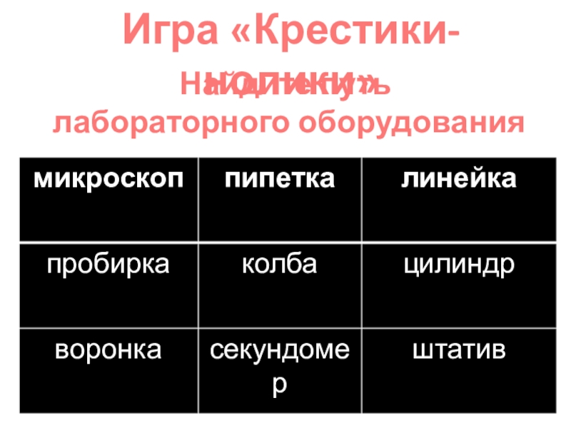 Игра «Крестики- нолики»Найдите путь лабораторного оборудования