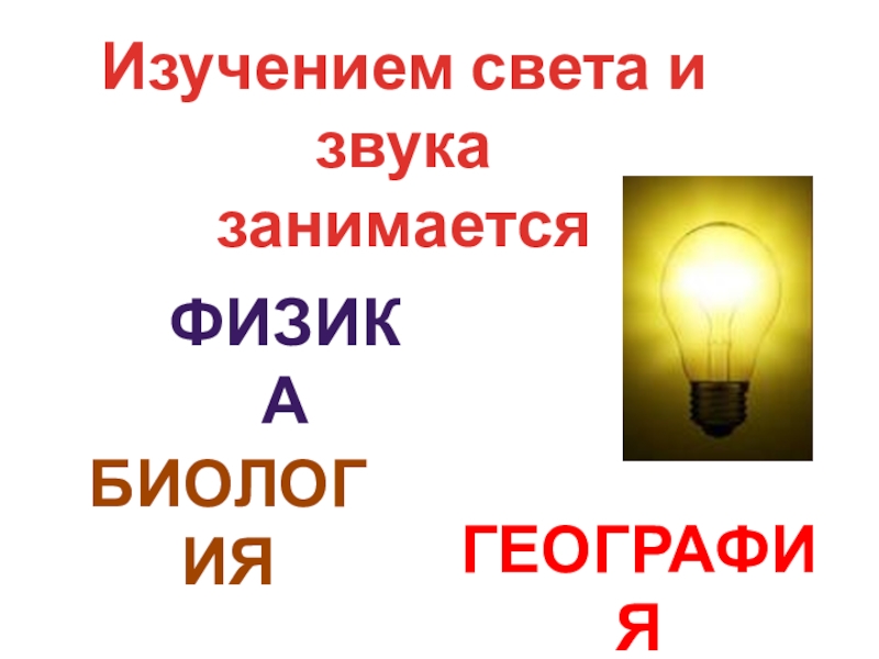 Изучением света и звука занимаетсяФизикаБИОЛОГИЯГЕОГРАФИЯ