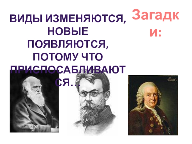 Загадки:Виды изменяются, Новые появляются,Потому что Приспосабливаются…