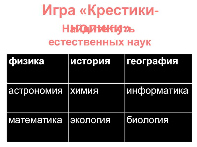 Игра «Крестики- нолики»Найдите путь естественных наук