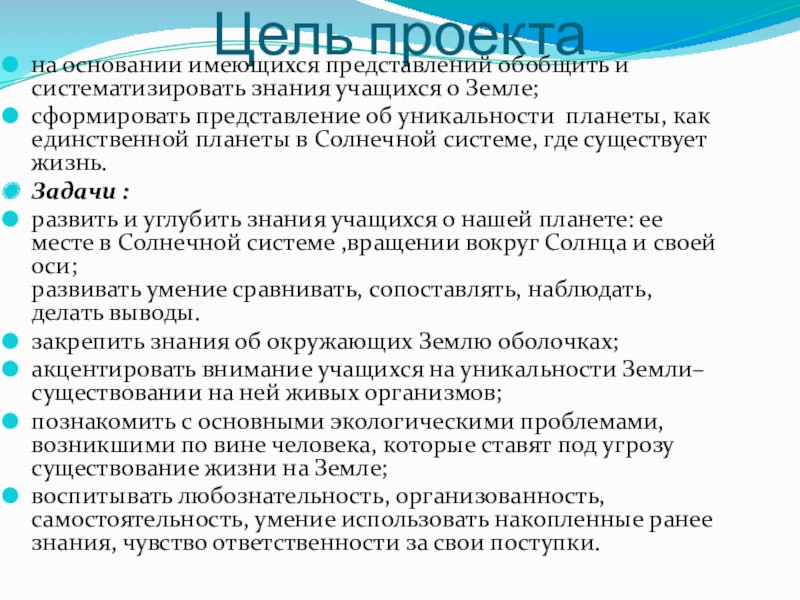сформировать представление об уникальности планеты, как единственной планеты в Солнечной системе, где существует жизнь.