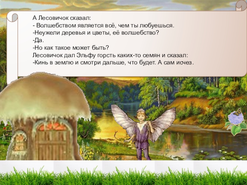 Слайд 3Но вот однажды увидел Эльф Лесовичка, из разговора с которым узнал,