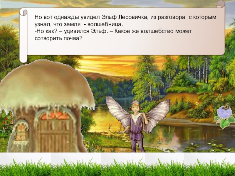 Но вот однажды увидел Эльф Лесовичка, из разговора с которым узнал, что земля - волшебница. -Но как?