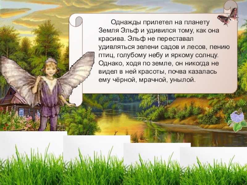 Однажды прилетел на планету Земля Эльф и удивился тому, как она красива. Эльф не переставал удивляться зелени