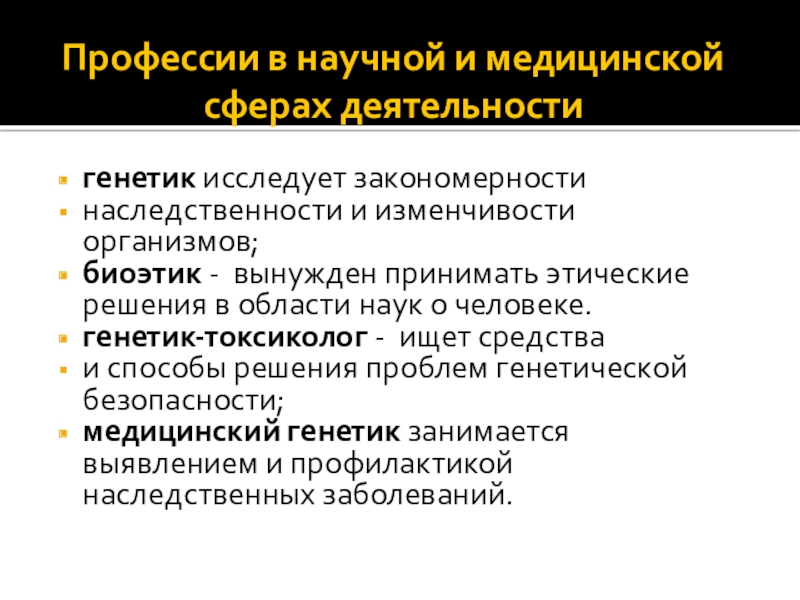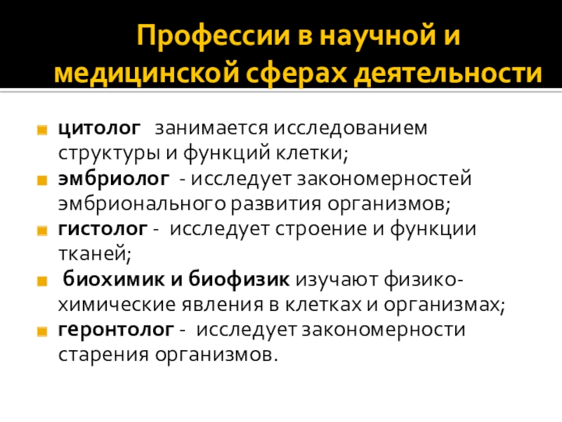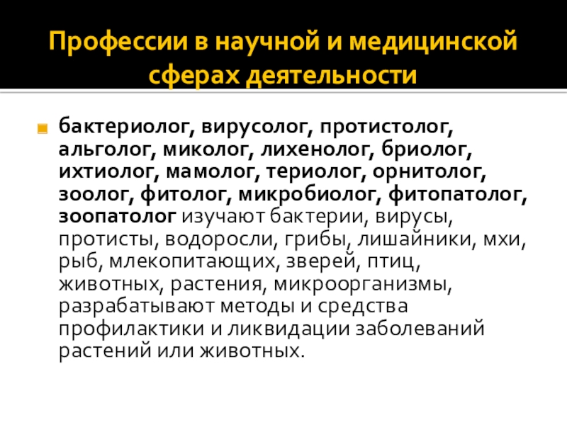 Слайд 4Профессии в научной и медицинской сферах деятельности