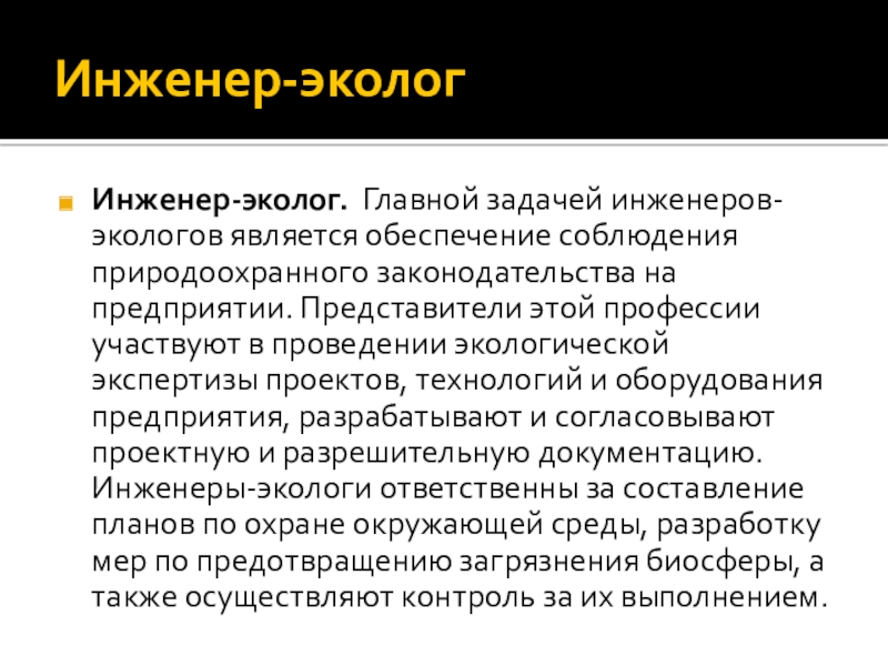 Слайд 13Инженер-эколог