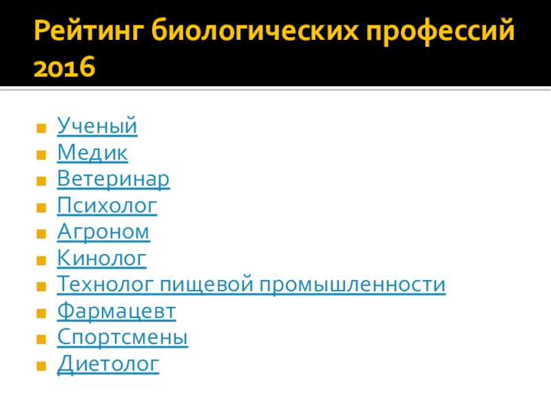 Слайд 1Рейтинг биологических профессий 2016