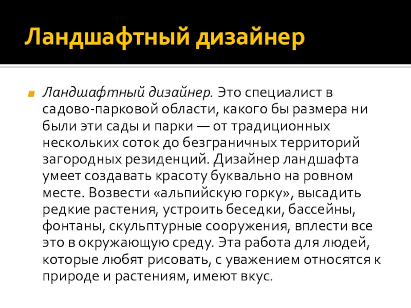 Слайд 20Ландшафтный дизайнер