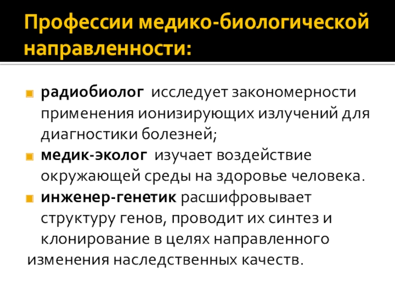 Слайд 10Профессии медико-биологической направленности: