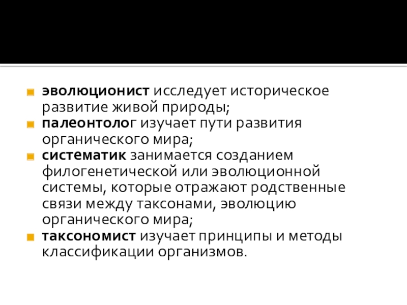 Слайд 8эволюционист исследует историческое развитие живой природы;