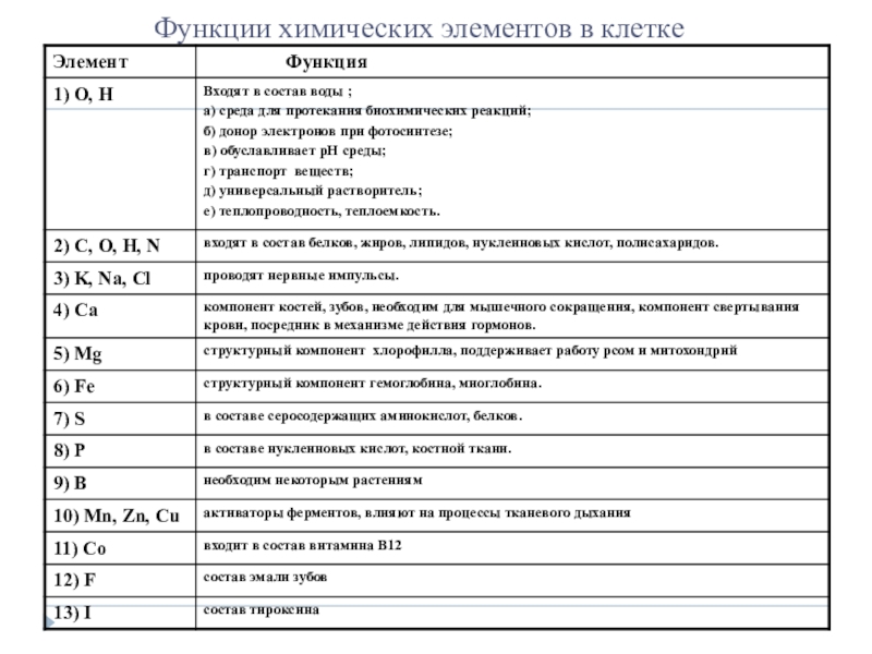 Вопрос. Используя материал учебника, скажите, какова роль элементов в клетке?