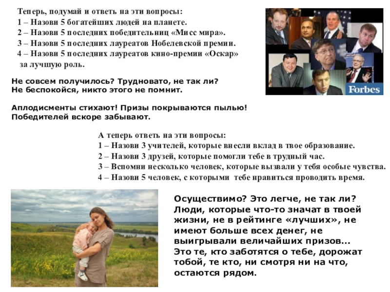 3 – Вспомни несколько человек, которые вызвали у тебя особые чувства.