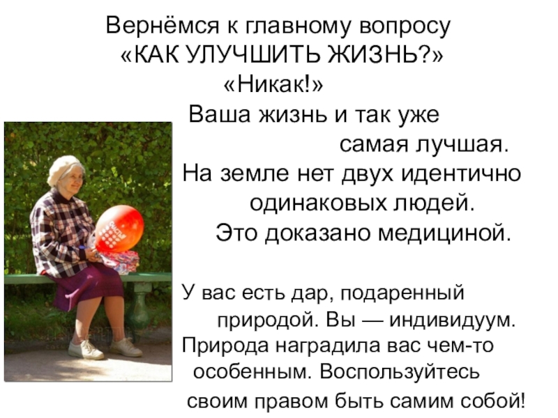 Попробуйте осознать и принять эти «законы» жизни, начните жить в соответствии с ними.