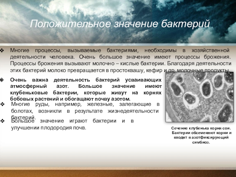 Большое значение играют бактерии и в улучшении плодородия почв.