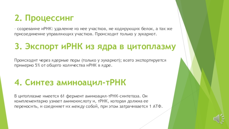 Происходит через ядерные поры (только у эукариот); всего экспортируется примерно 5% от общего количества иРНК в ядре.