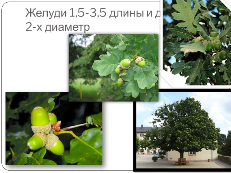 Слайд 6Желуди 1,5-3,5 длины и до 2-х диаметр
