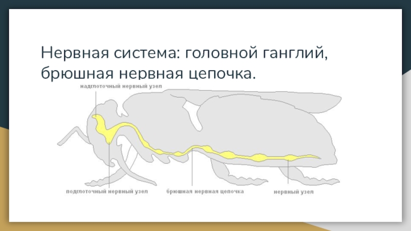 Слайд 7Нервная система: головной ганглий, брюшная нервная цепочка.