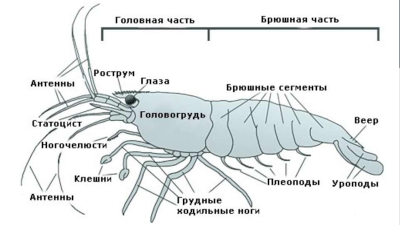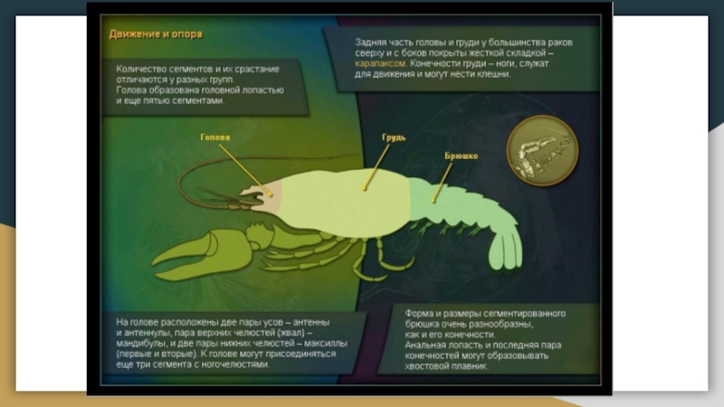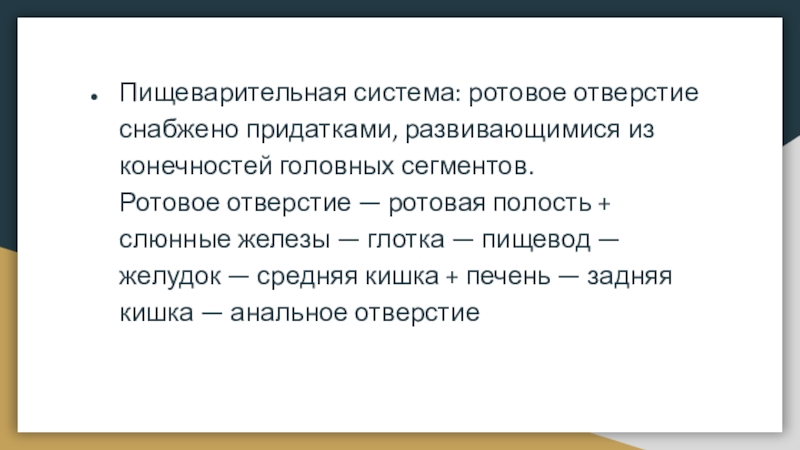 Слайд 10Пищеварительная система: ротовое отверстие снабжено придатками, развивающимися из конечностей головных сегментов.