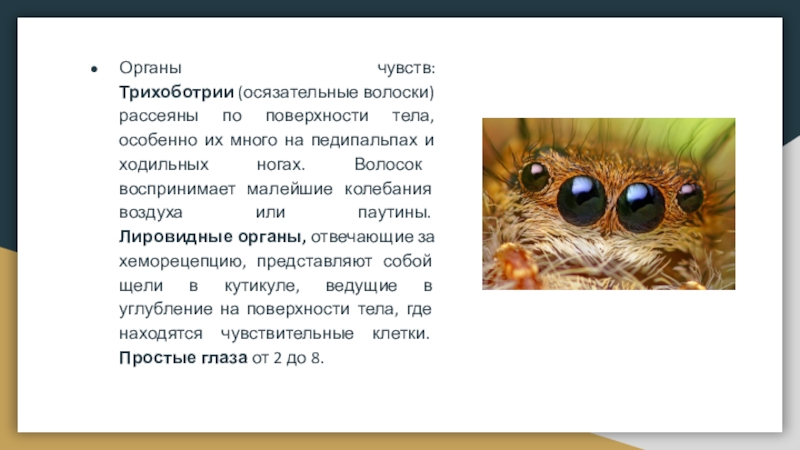 педипальпах и ходильных ногах. Волосок воспринимает малейшие колебания воздуха или паутины.